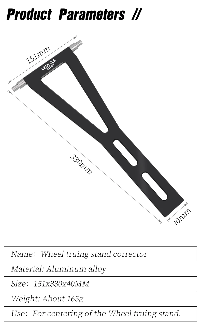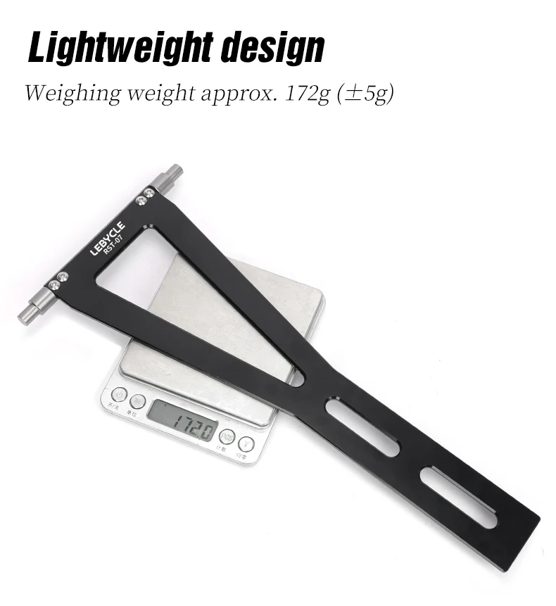 The LEBYCLE Custom Bike Wheel Rim Centering Gauge is a precision alignment tool designed to check and adjust whether a bicycle wheel rim is perfectly centered relative to the hub. Made from durable aluminum, it is compatible with most MTB and road bike wheels (typically 16″–29″/700C), and works with both quick-release and thru-axle setups. It helps ensure accurate wheel truing, improved riding stability, and reduced brake rub, making it suitable for home mechanics and professional repair shops.