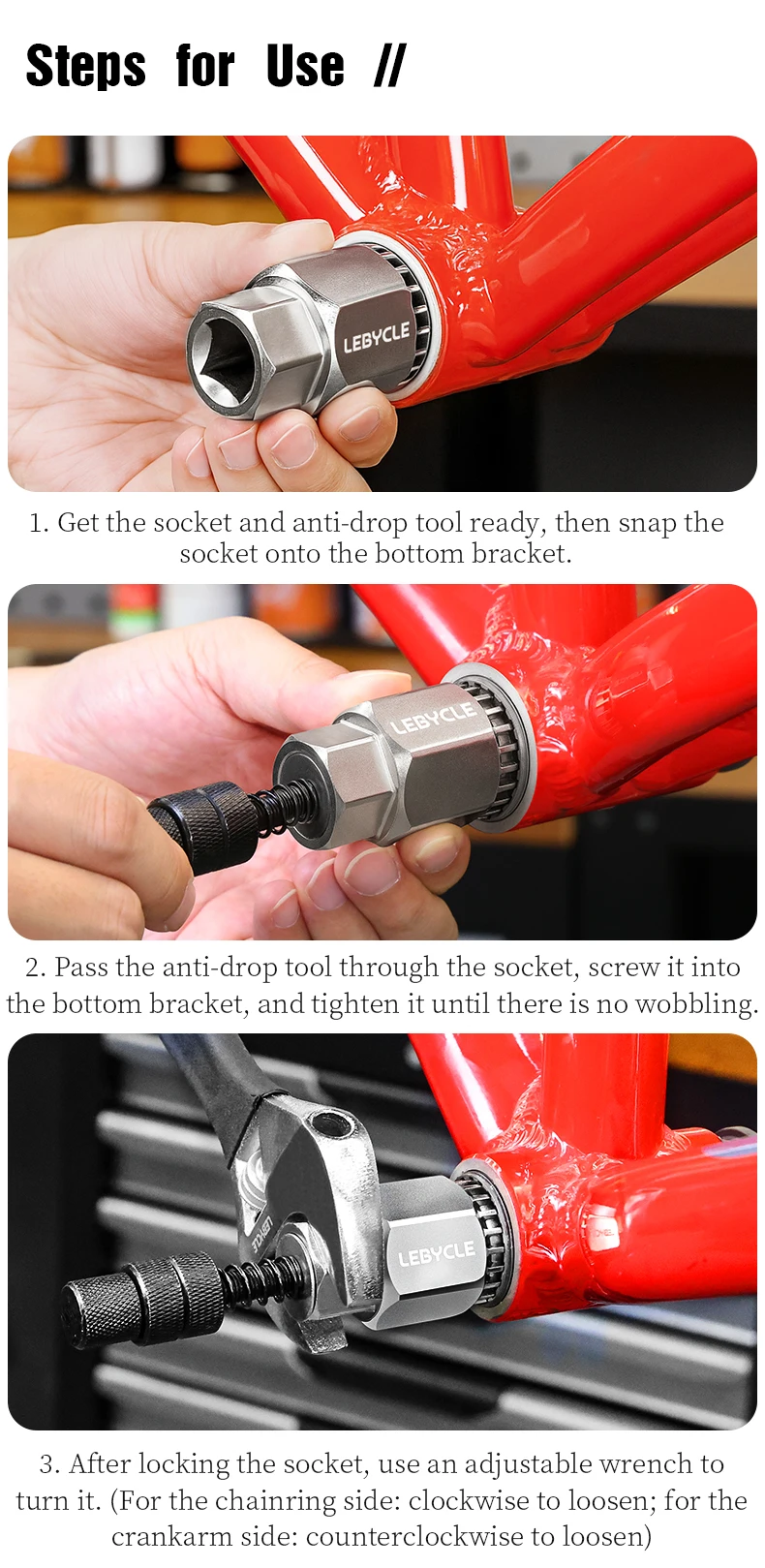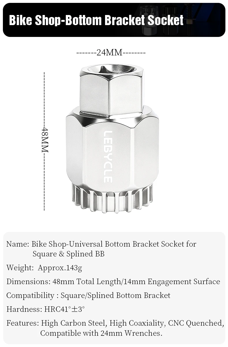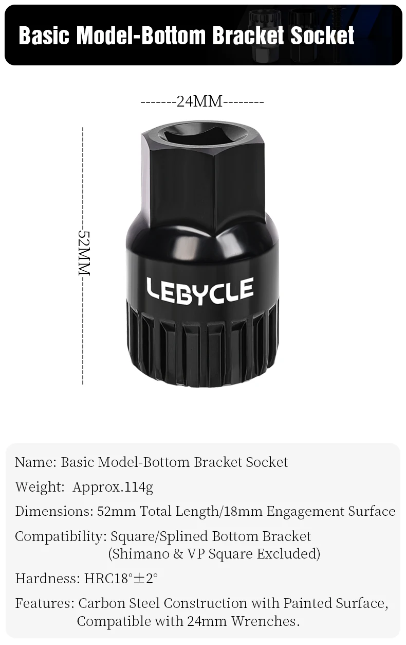 LEBYCLE High Carbon Steel Bike Square Taper Bottom Bracket Installation Removal Tool