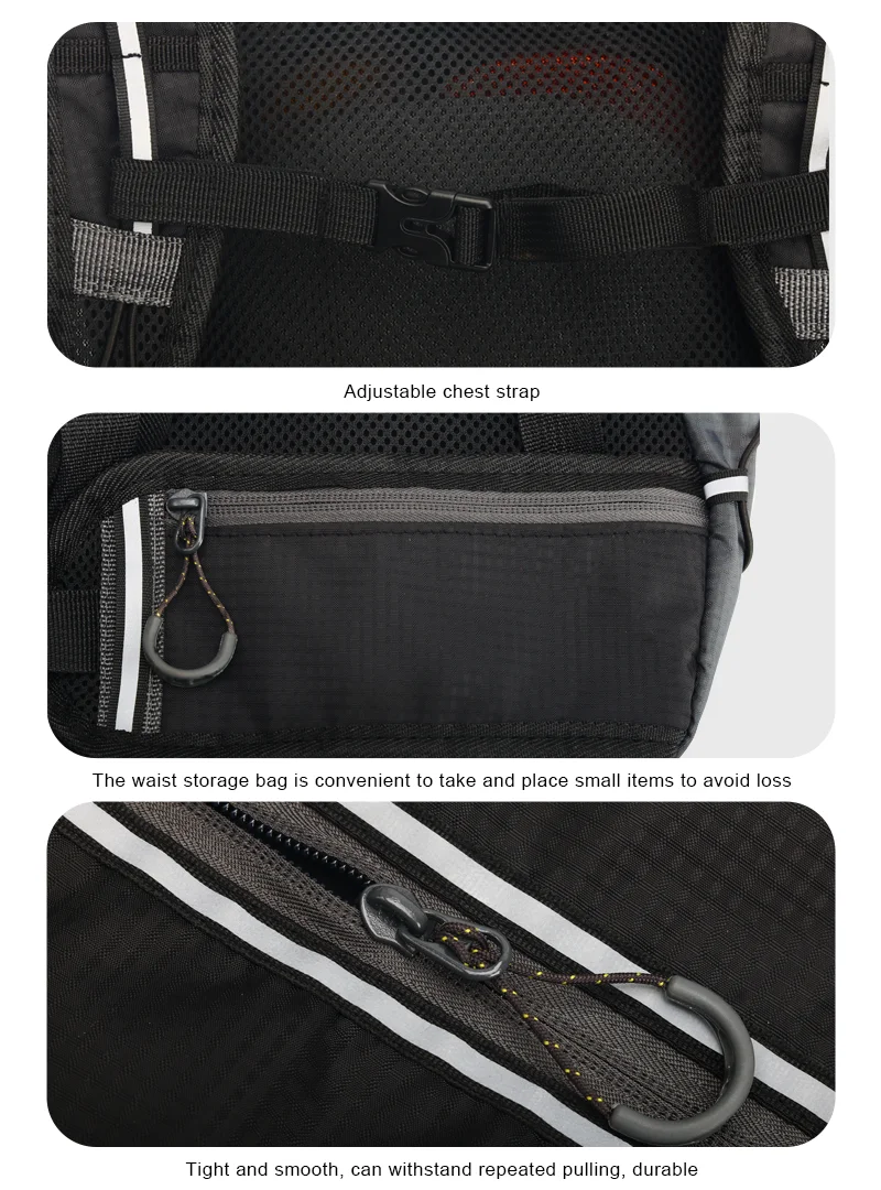 3.Adjustable shoulder strap, chest strap and waist strap to fit your need.